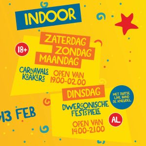 Dit jaar wordt het Anton Pieckplein omgetoverd tot een outdoor carnaval festival plein. Met de lekkerste (vette) hapjes en drankjes onder het genot van echte carnavalskrakers gespeeld door lokale bloaskapellen en DJ Destination kan dit niet anders dan één groot knalfeest worden! Maandag kunnen de longen ut het lijf gezongen worden, want dan is er een open podium (op aanmelding).